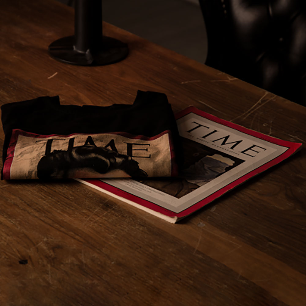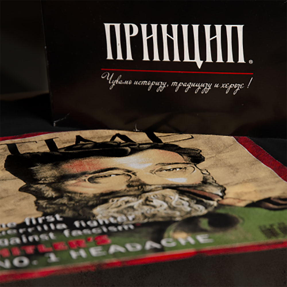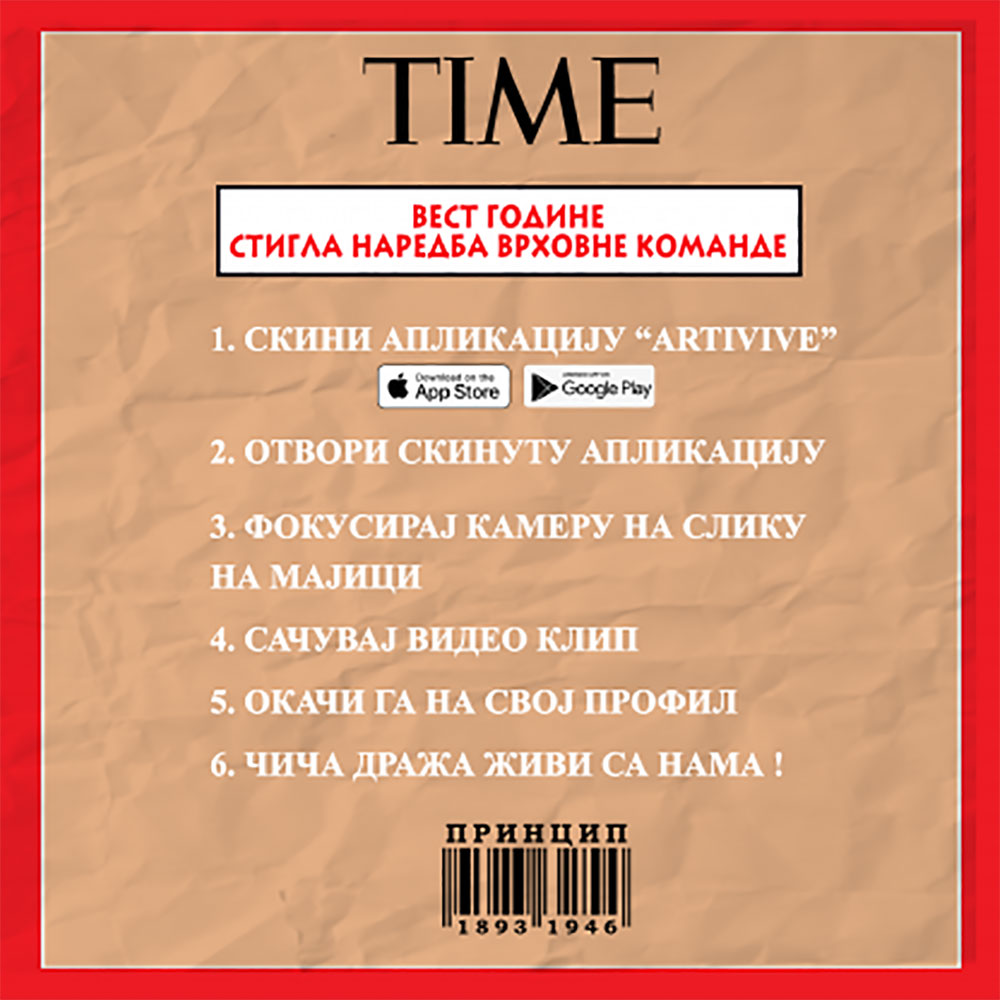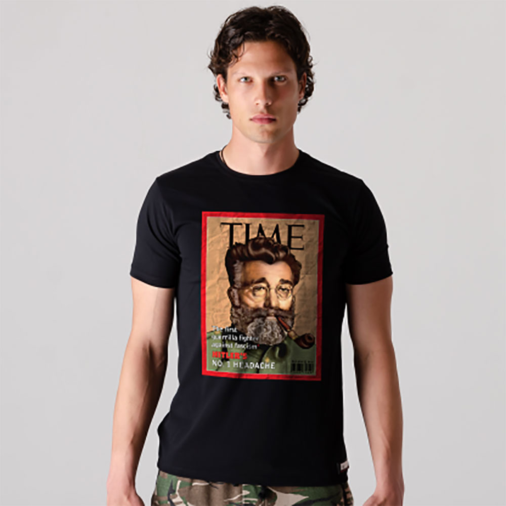 Мотив представља редизајн споја оригиналних издања два најпрестижнија магазина тог времена “Time” и “Liberty”, на чијим насловним странама је Ђенерал Дража изашао у априлу и мају 1942. године уз текст “Хитлерова главобоља број 1 – Први борац против фашизма у Европи”. Мајица је израђена најмореднијом 4Д технологијом што значи да скенирањем мајице камером телефона, Дража оживљава и његов лик поново поносно шета међу нама.